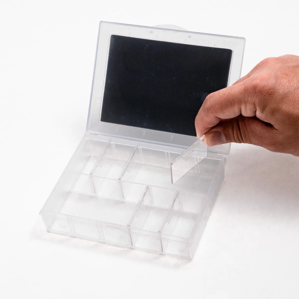 - organizátor s nastavitelnými kompartmenty a pěnový vrchol pro snadnou transport a další potlačení.