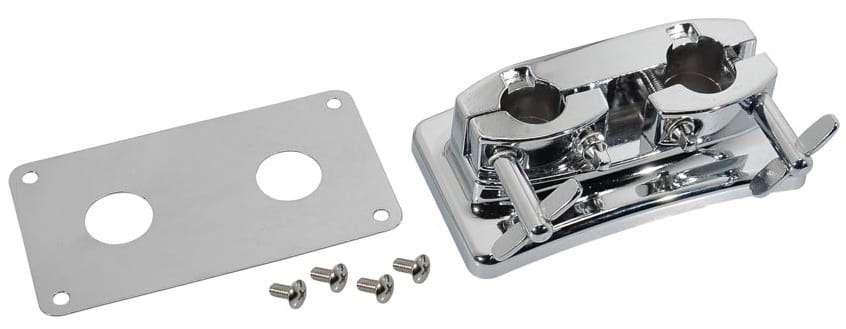 Univerzální objímka pro 2 držáky o průměru cca 22 mm. Sada obsahuje montážní šrouby a kovovou destičku chránící tělo před poškozením.