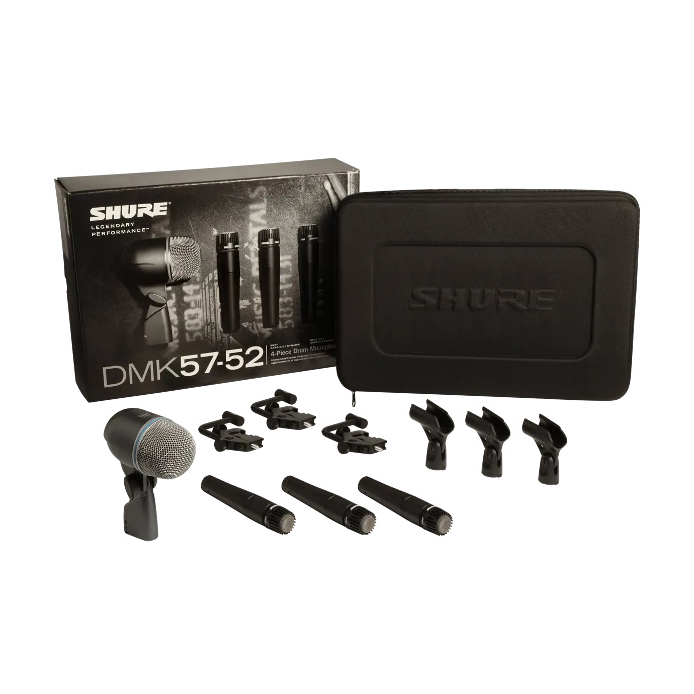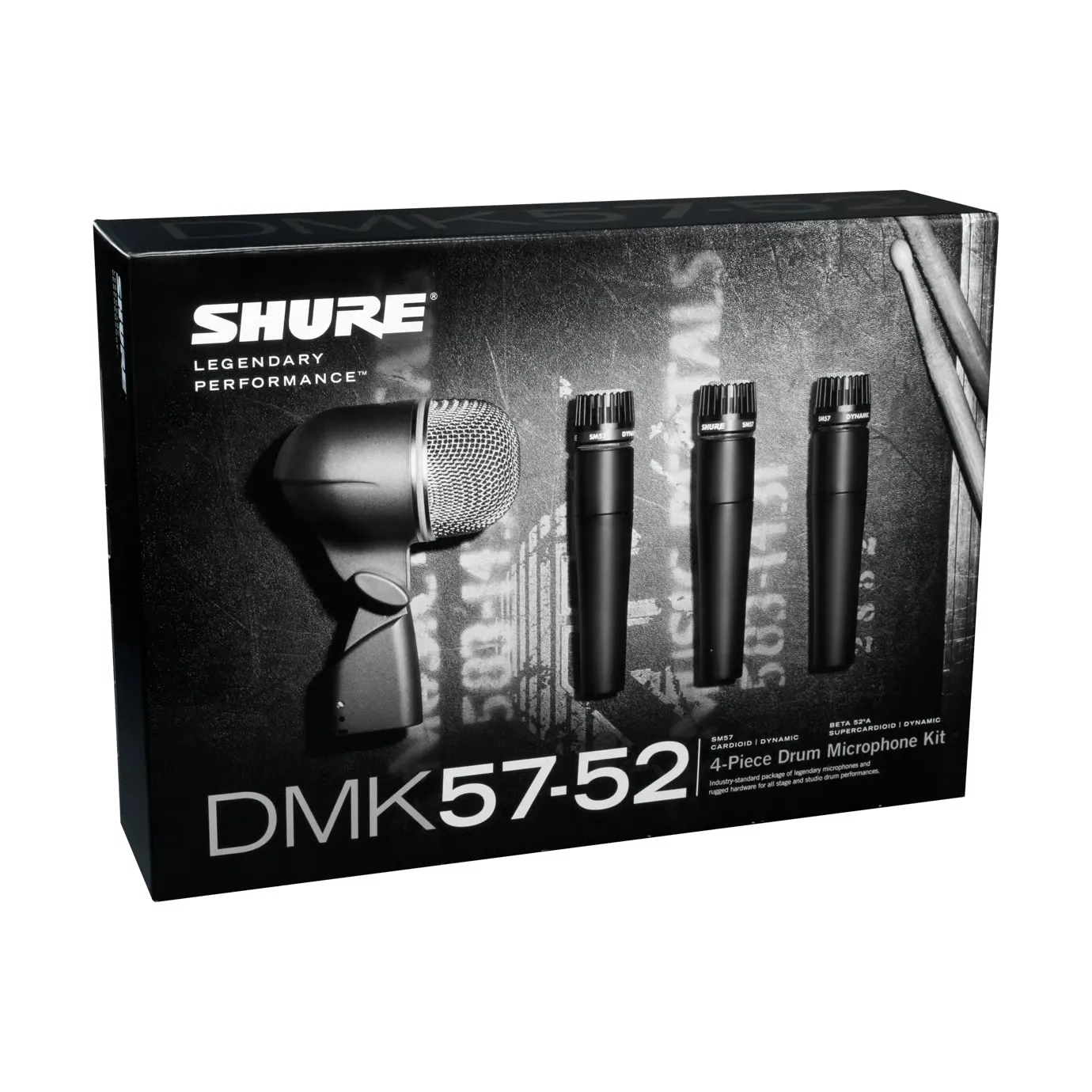 DMK57-52 je čtyřdílná profesionální sada bicích mikrofonů. Obsahuje tři nástrojové mikrofony SM57, které jsou ideální pro virbl a tom-tomy, a také mikrofon na basový buben Beta 52A. Sada obsahuje montážní příslušenství a odolné přepravní pouzdro.